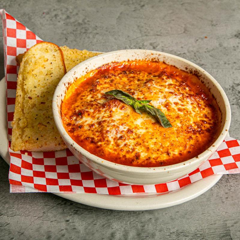 Home-made sauce and simmered with herbs and spices. Comes with garlic bread.